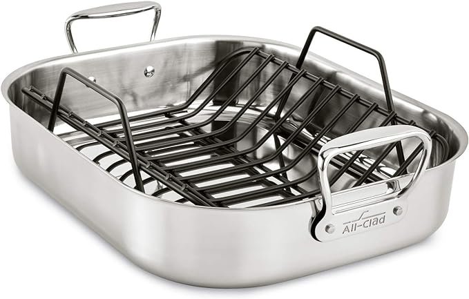 With this All-Clad heavy-duty roasting pan, the roast cooks evenly to a golden brown. Once you have your seasoned roast, it’s time to let the All-Clad roasting pan cook for you. I also only use stainless steel pan for easy stove top deglazing pan juices for the best gravies. You can not deglaze using a cheap pan. For me, the All-Clad Pan has been easy to clean, and I have had it for years. This roasting pan has become a kitchen must have in my home using it every week for Sunday dinners and for holiday get-togethers every year.