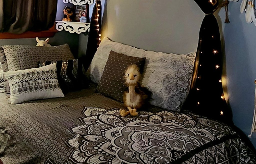 Bohemian style was exactly what my teenage daughter needed with the calming natural colors, textures, and fairy lights to lighten the mood.
