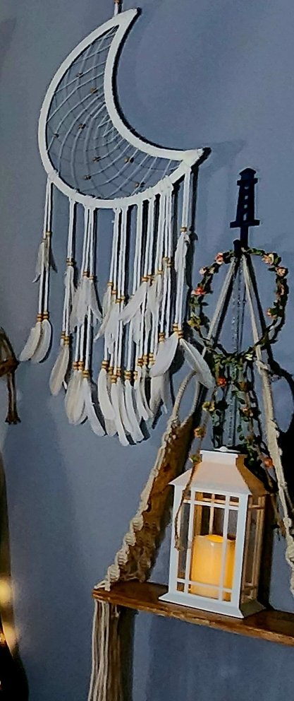 I had the bed area is done, now I had to hang a dream catcher to set the look over the bed. A few dream catchers, better safe than sorry.